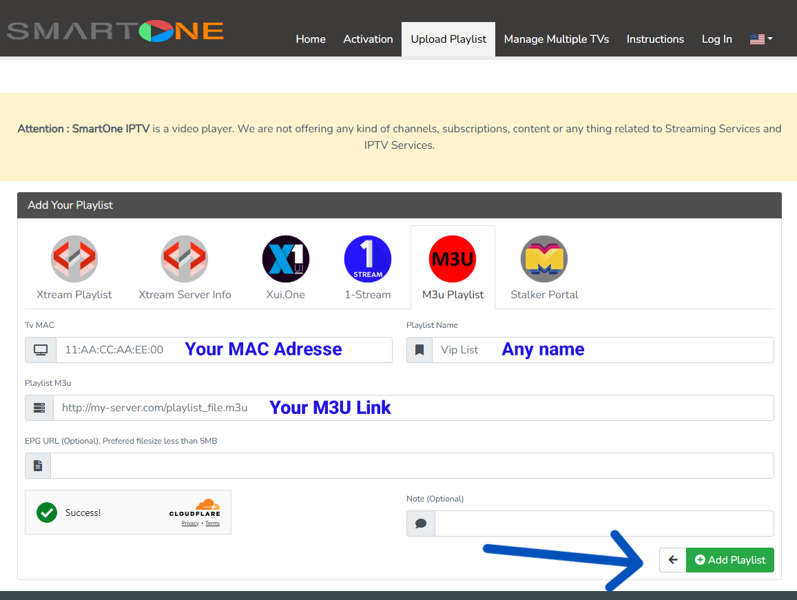 Step 3 – Add Your IPTV Playlist to SmartOne IPTV